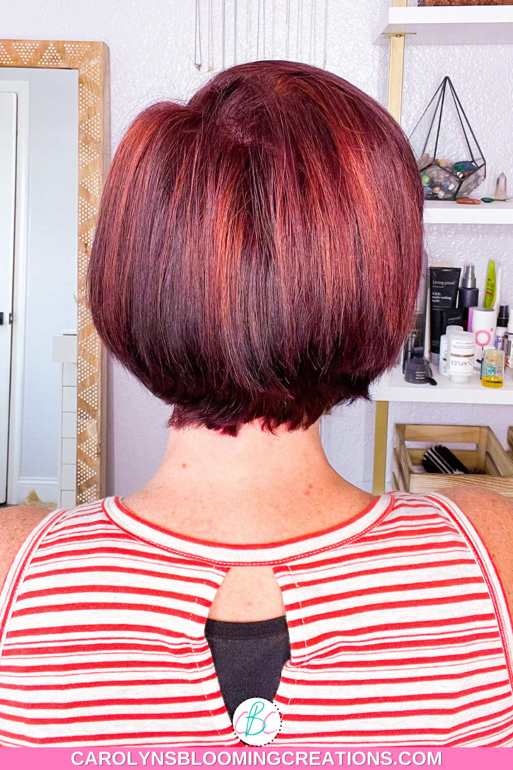 A back view of my mom’s fine thin hair after my shine tips and tricks