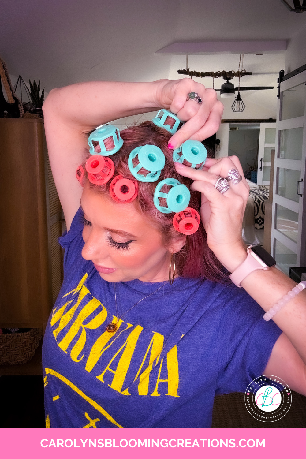 I tested my set two times before writing this tutorial. The first time I rolled my freshly shampooed (I love Viori shampoos and you can get them here for 10% off or use my code CAROLYNBRADEN at Viori.com) and dried (I love my WavyTalk hair dryer, get on Amazon, $60) hair in the stylers.