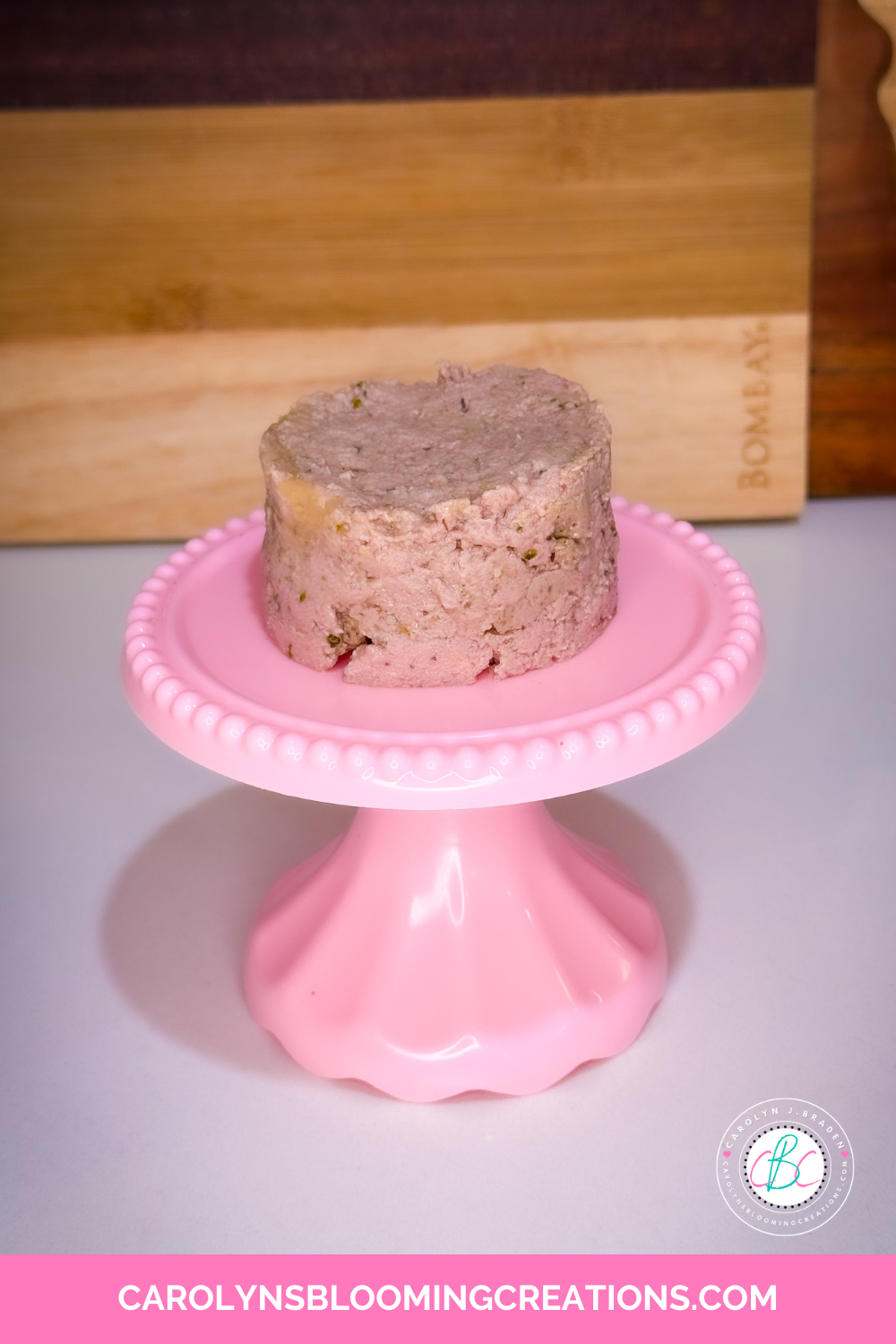 We made our cake with dog food and chicken, as our dogs have sensitive stomachs and we don’t give them much human food. Sticking to the same food you already feed your pet is best, so while I used one specific type of canned food, you should use what your dog or cat likes.